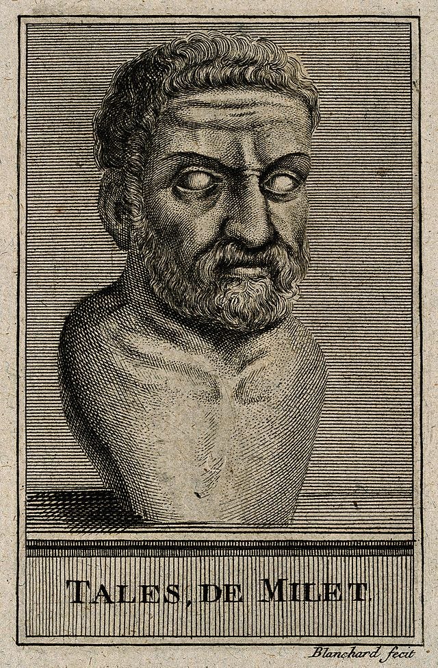 Thus Thales of Miletus famously said that everything was made of water. Other philosophers followed, with Anaximenes saying that everything was made of air, Heraclitus fire, and Anaximander the “boundless, (by which he understood the indeterminate …), a fusion of all the contraries”. (ItP)